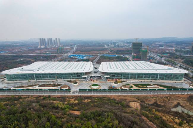 鄂州国际会展中心项目位于临空大道北侧,总用地面积151141平方米,建筑面积116517.30平方米。其中地上二层,地下一层,将建成一个以展览为主,科技、会议并行的综合性展览中心。“工程预计4月底完工交付,目前正在做收尾工作和机电调试。”白色蝴蝶的设计灵感来自鄂州特色雕花剪纸,不仅塑造出舒展的视觉效果,更喻意
